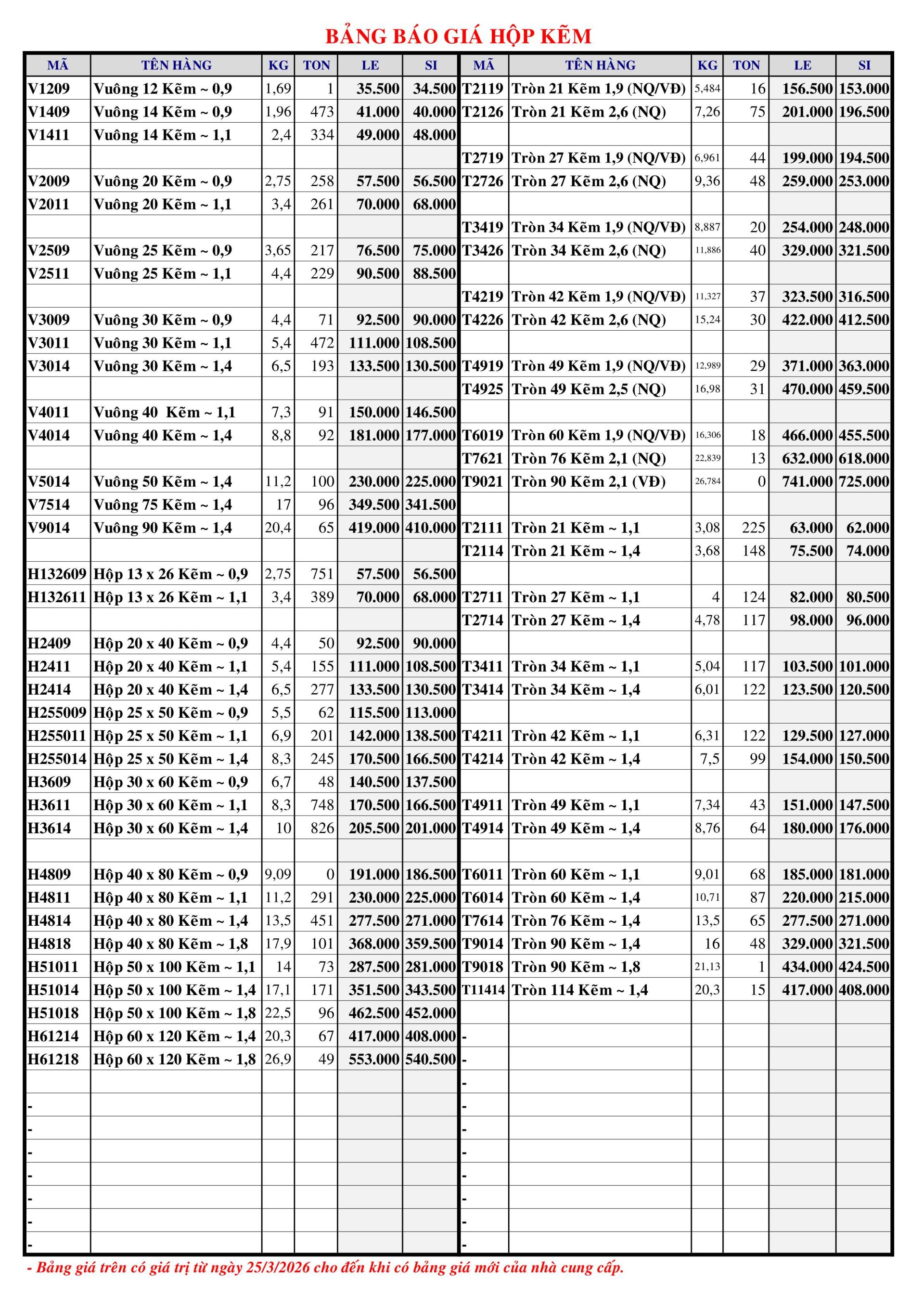 GIÁ HỘP THỊ TRƯỜNG