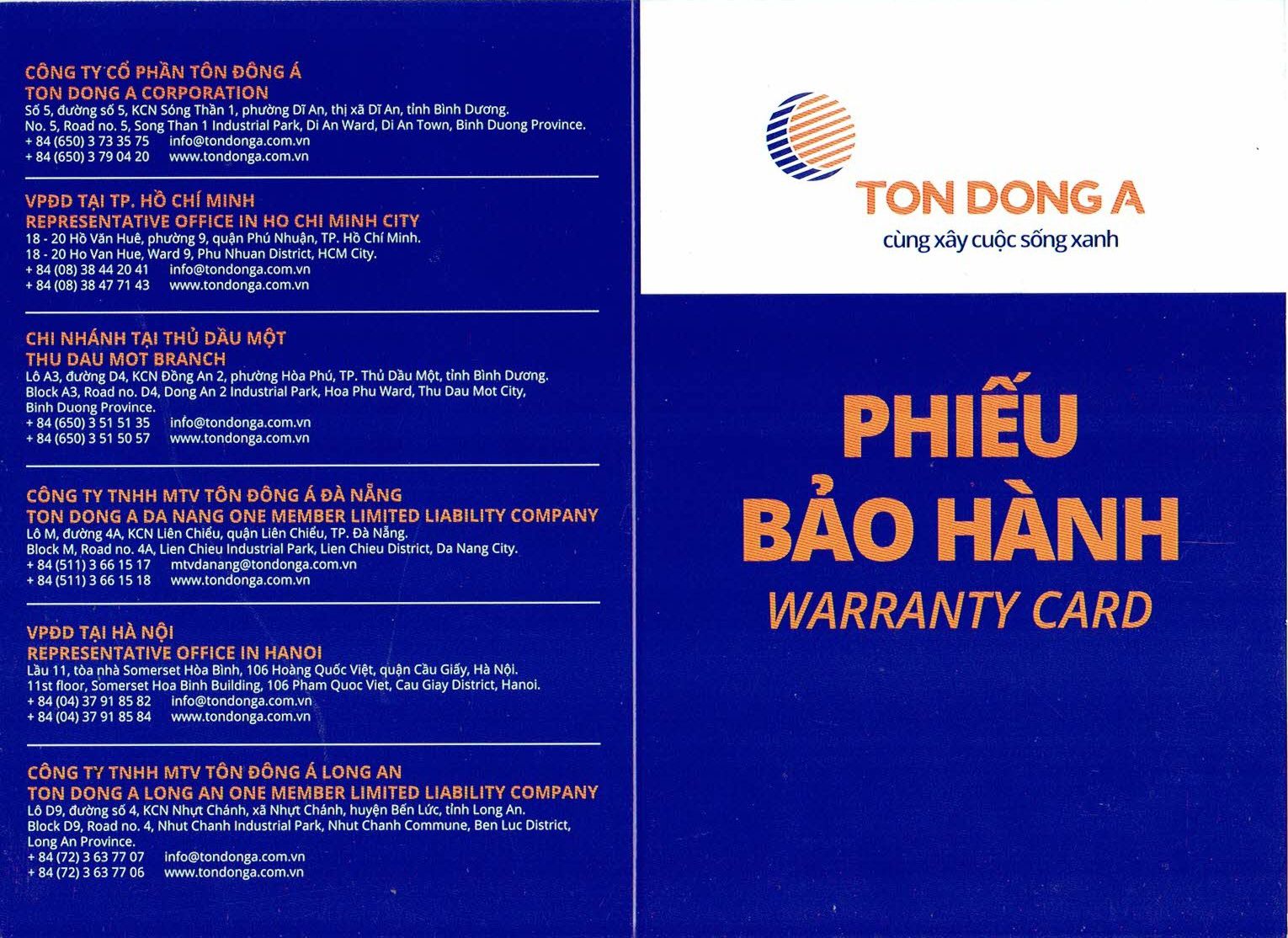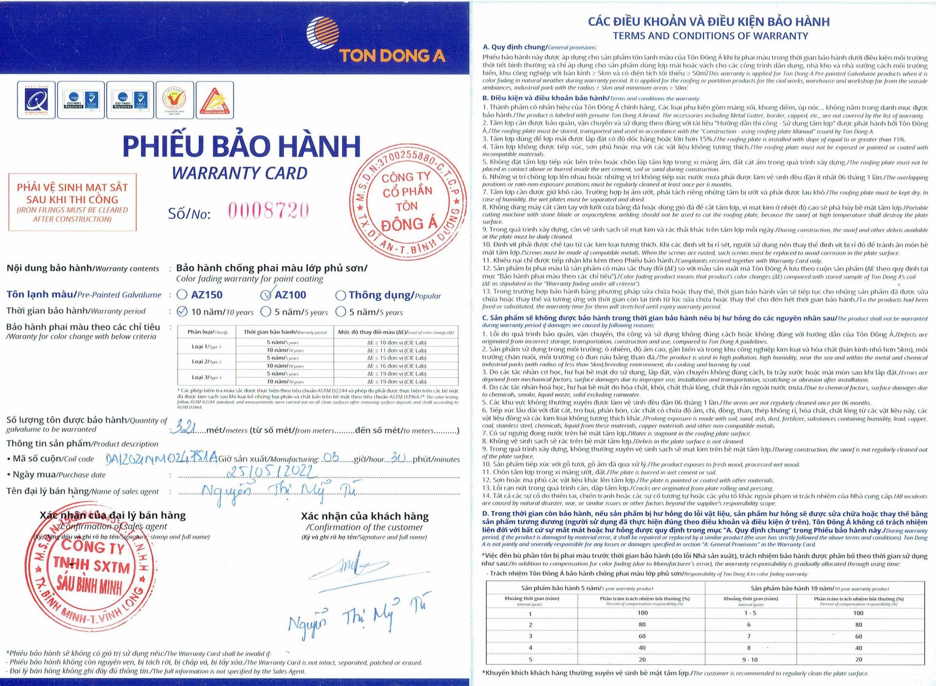 MẪU PHIẾU BẢO HÀNH: